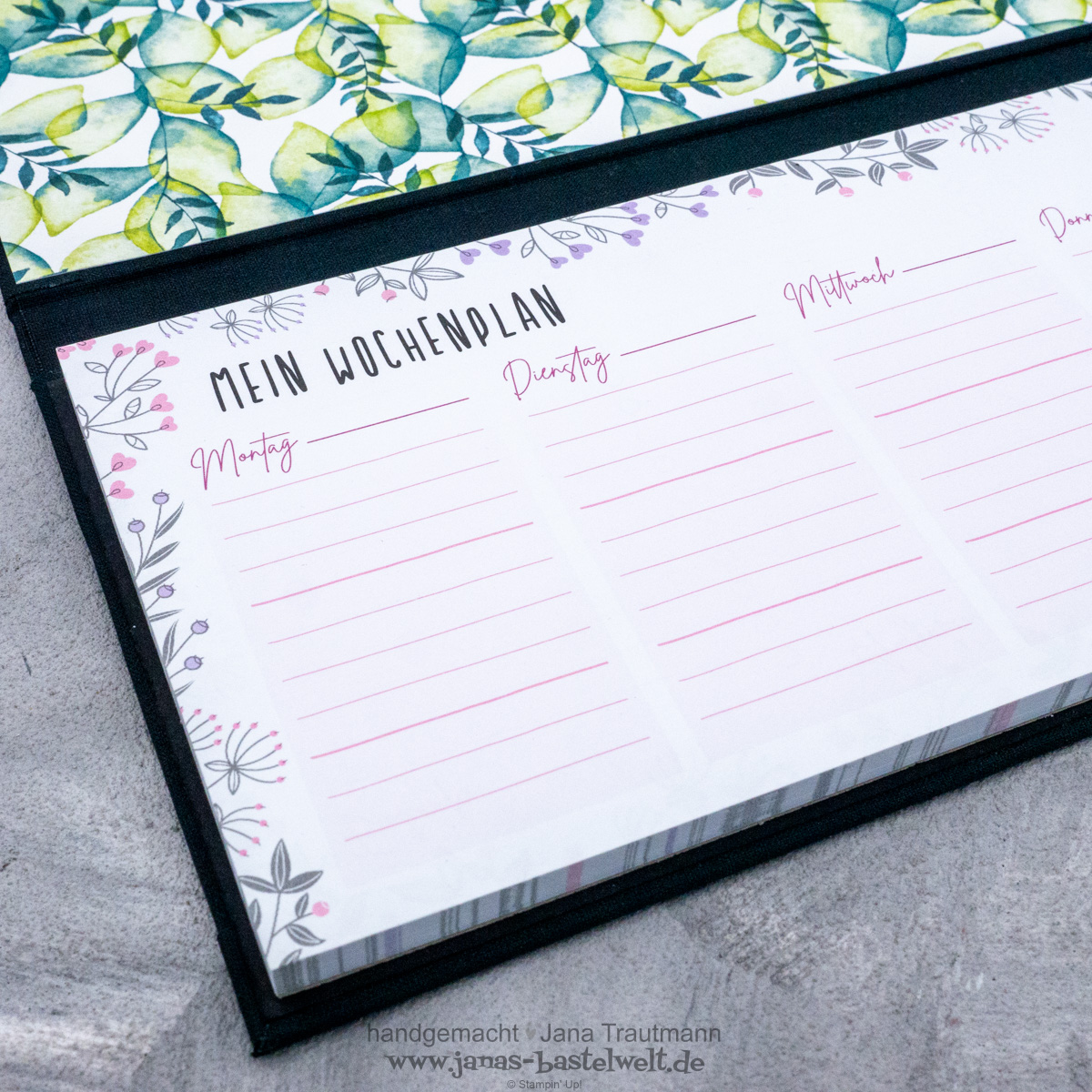 Das so gestaltete Cover lässt sich einfach aufklappen und zum Vorschein kommt ein Wochenplaner: