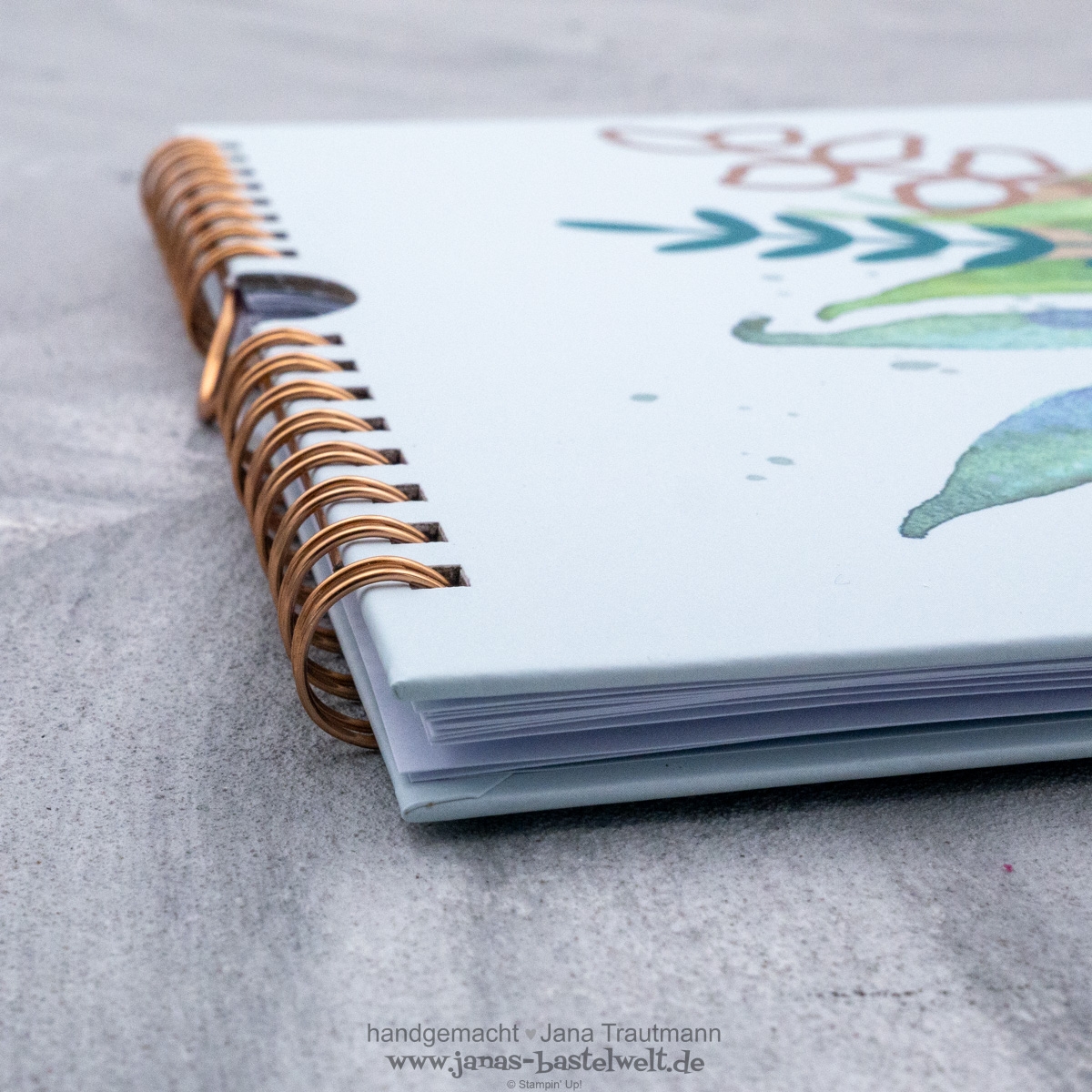 Zu guter letzte noch ein Blick auf die kupferfarbene Bindung - wie von Stampin' Up! gewohnt wurde alles perfekt aufeinander abgestimmt: