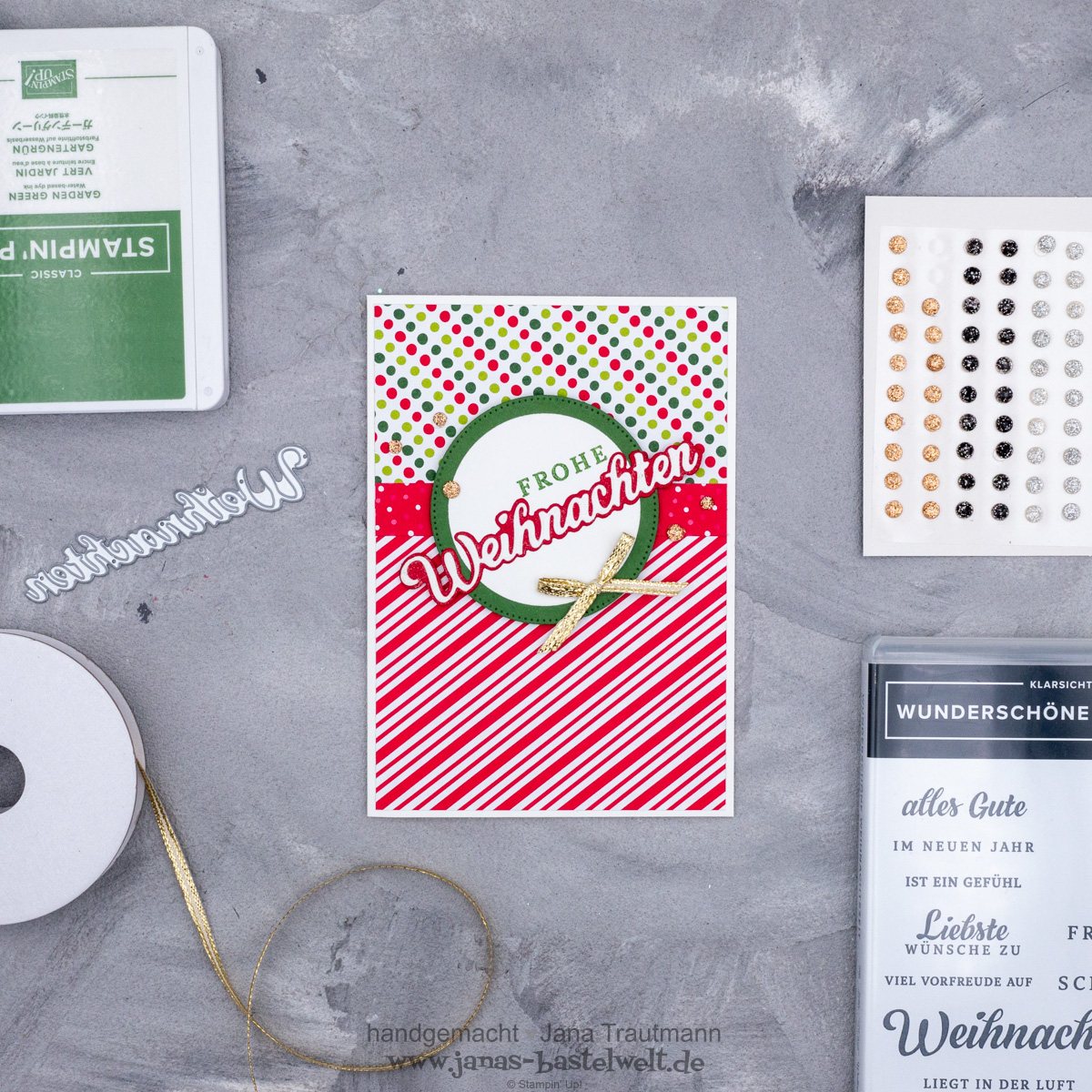 Weihnachten rückt immer näher und das kalte, trübe Wetter lädt ein, es sich am Basteltisch gemütlich zu machen, daher bin ich aktuell im Weihnachtskarten-Bastelfieber. Diesmal habe ich eine recht farbenfrohe Karte gestaltet: