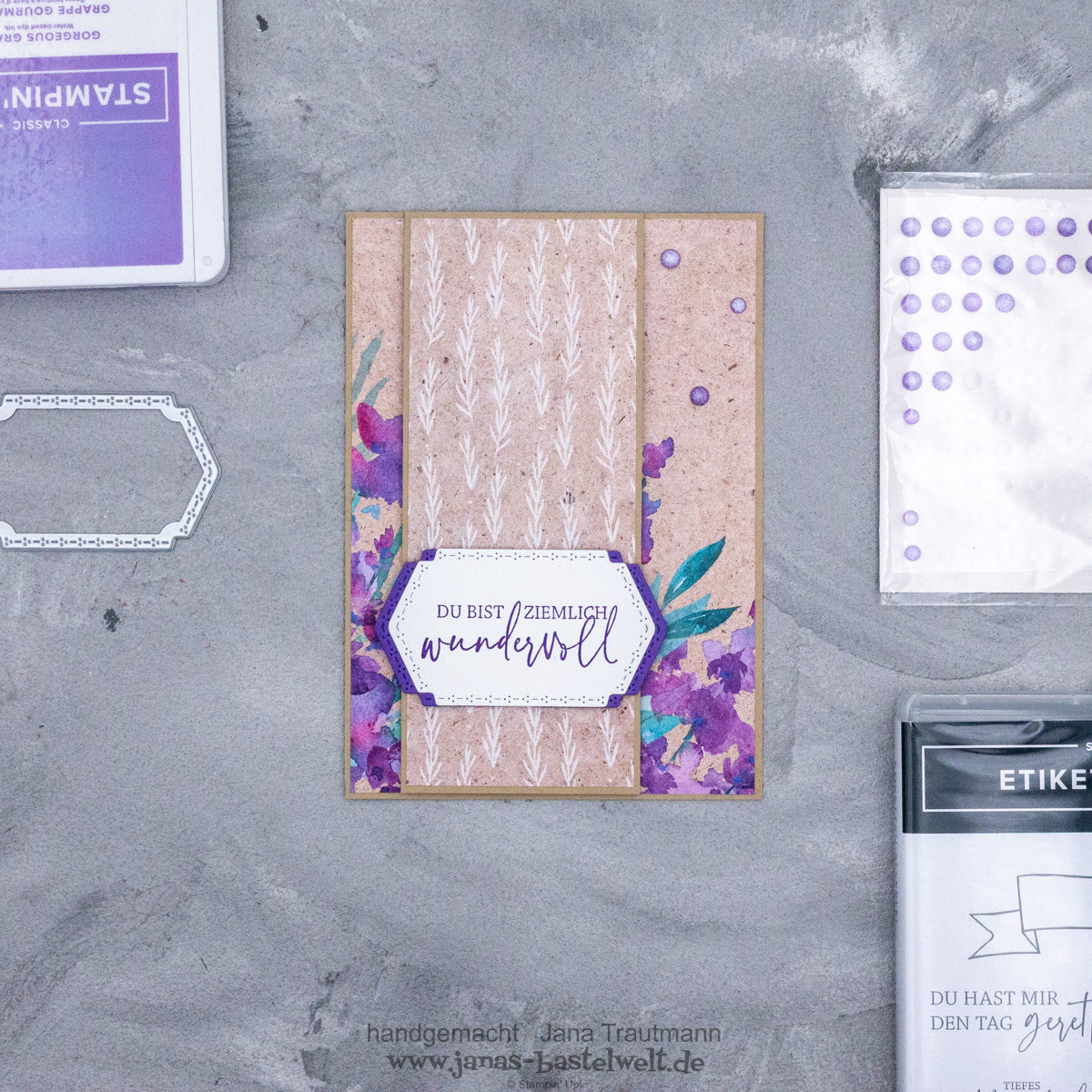 Ich bin in letzter Zeit einfach mal meine alten Video-Tutorials durchgegangen und habe mir das eine oder andere davon herausgepickt und mit neuen Produkten nachgebastelt. So ist diese zarte Grußkarte entstanden: