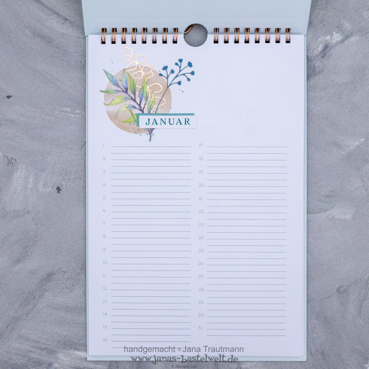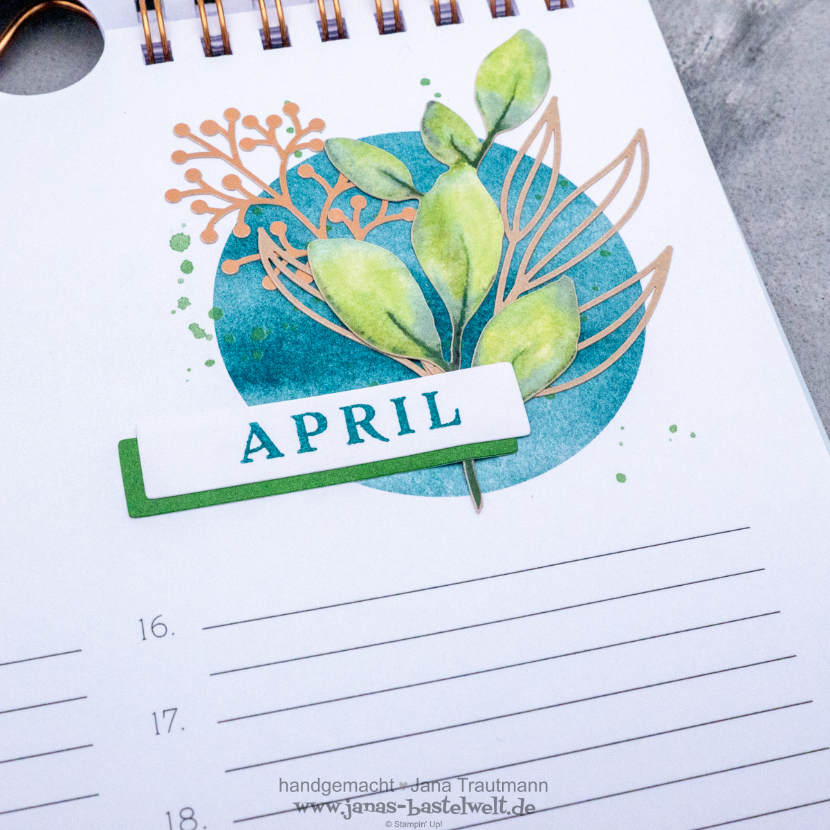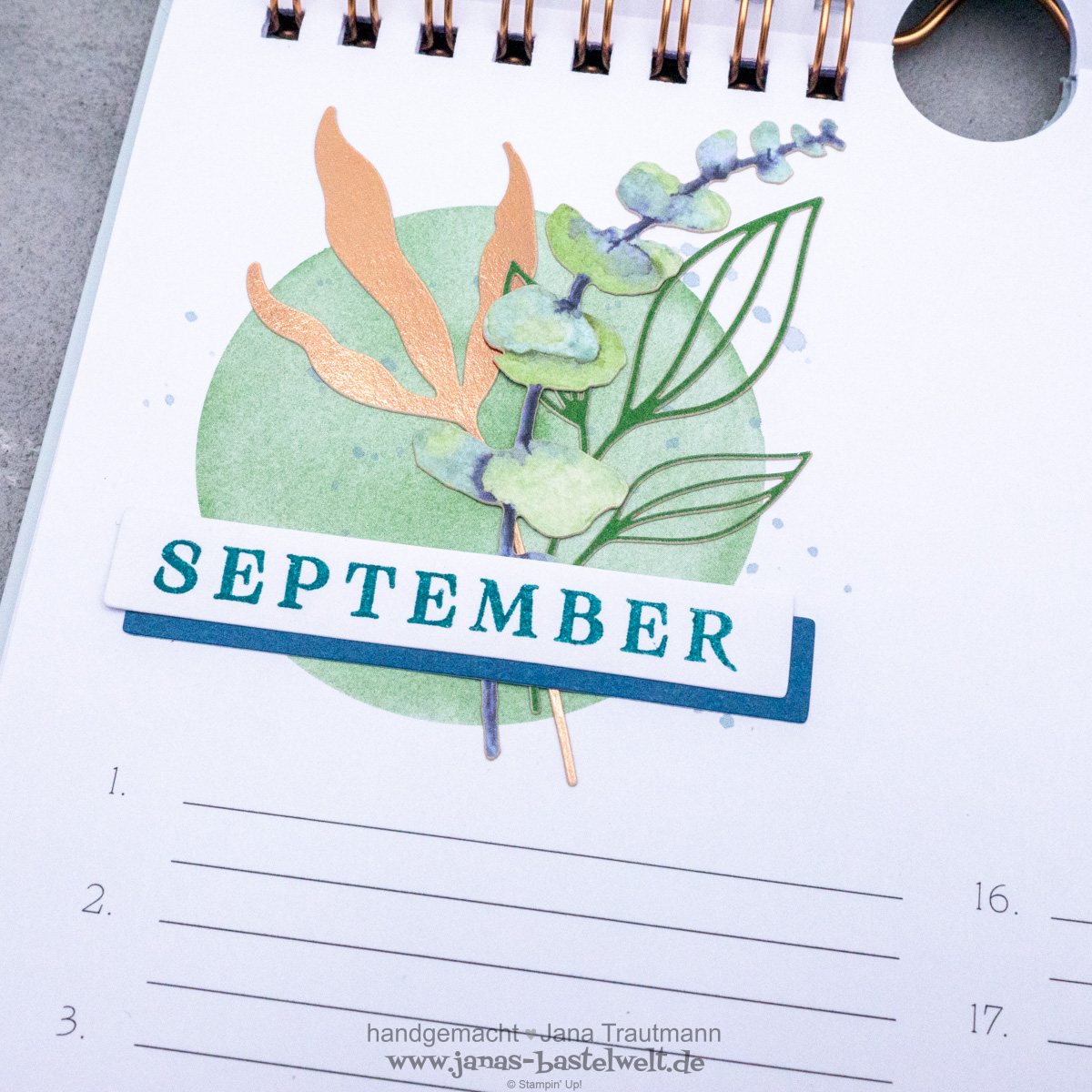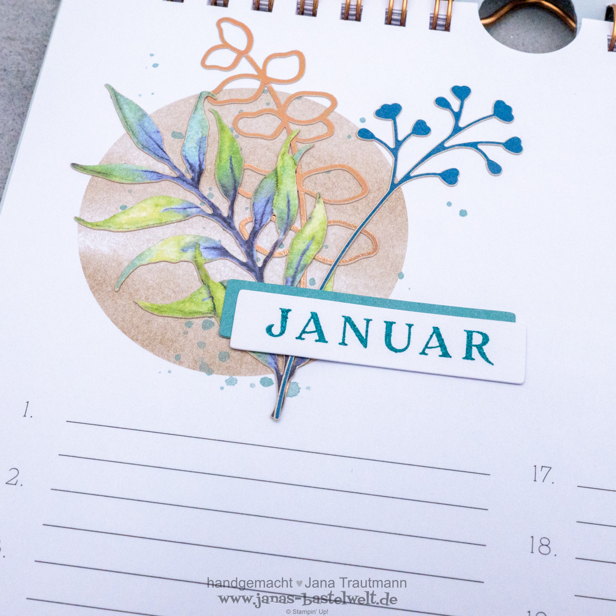 Zu guter letzte noch ein Blick auf die kupferfarbene Bindung - wie von Stampin' Up! gewohnt wurde alles perfekt aufeinander abgestimmt: