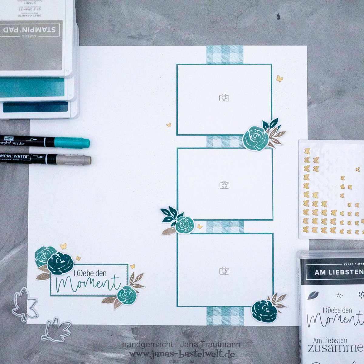 Bereits Anfang Juli fand wieder ein After Work-Basteln mit dem Demorat von Stampin' Up! statt; aufgrund der bereits erwähnten Umstände komme ich jedoch erst jetzt dazu dir zu zeigen, was wir an diesem Abend gebastelt haben. Eigentlich wurde das Kreativset "Schöne Erinnerungen für Scrapbooks" verwendet, da ich dieses jedoch nicht hatte, habe ich auf vorhandenes Material zurückgegriffen und das Layout damit gestaltet. Hier mein Ergebnis: