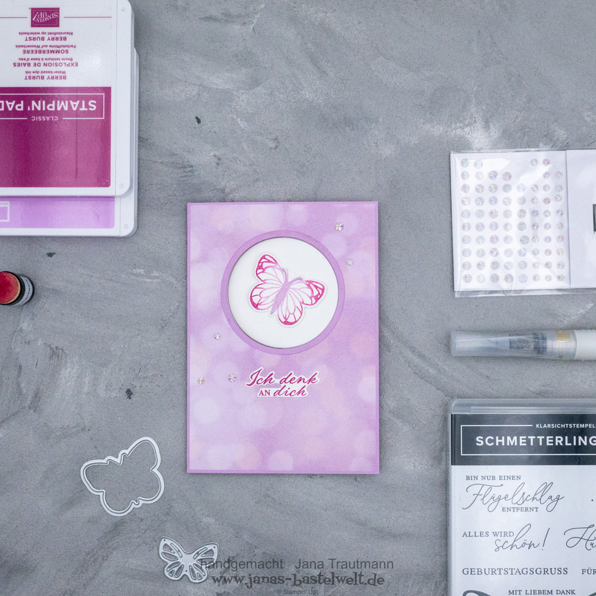 Ich bin in letzter Zeit einfach mal meine alten Video-Tutorials durchgegangen und habe mir das eine oder andere davon herausgepickt und mit neuen Produkten nachgebastelt. So ist diese zarte Grußkarte entstanden: