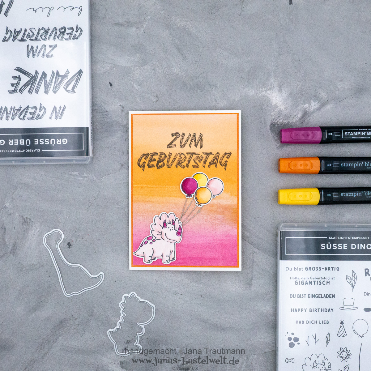 Die Dinos sind los! Ich bin eine ganze Weile um das Produktpaket "Süsse Dinos" herumgeschlichen, konnte letztendlich aber nicht wiederstehen *g* Und nun ist die erste Karte damit entstanden: