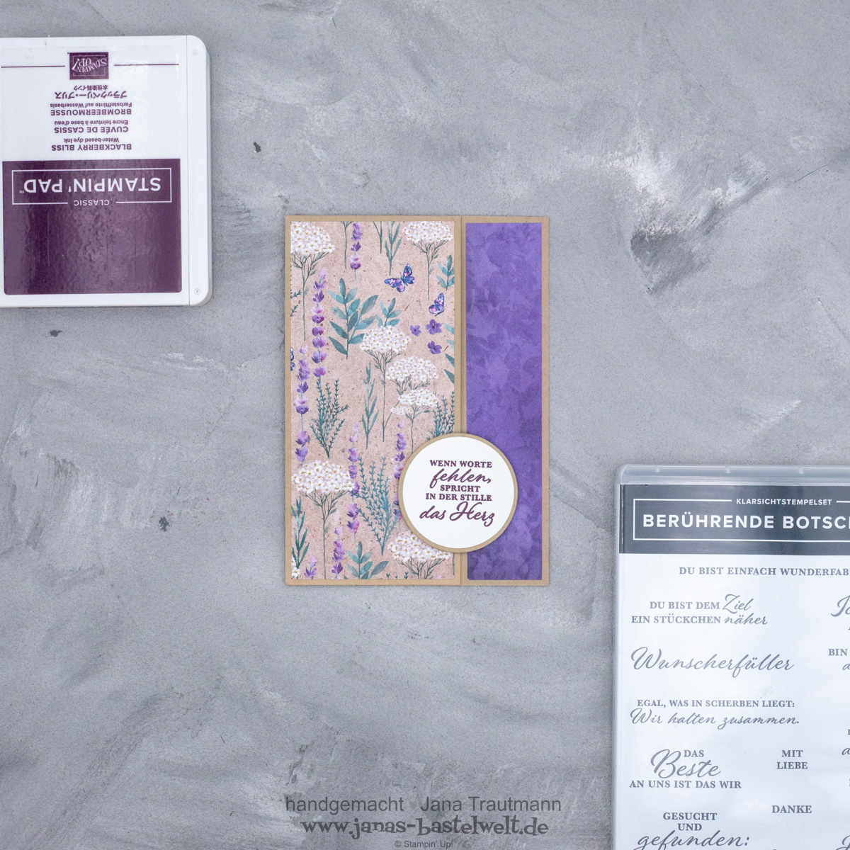 Diesen Monat lautet das Thema beim StampIRATION Blog Hop "Trauerkarte", denn auch diese Karten werden bisweilen gebraucht. Da ich persönlich die industriell hergestellten Trauerkarten mit ihren oft so unpassenden Sprüchen meist fürchterlich finde und eine selbstgestaltete Karte zudem viel persönlicher ist, fertige ich Trauerkarten "gerne" selbst an. Dabei muss es nicht immer trist monochrom sein, finde ich - und so ist für den Blog Hop diese Karte entstanden: