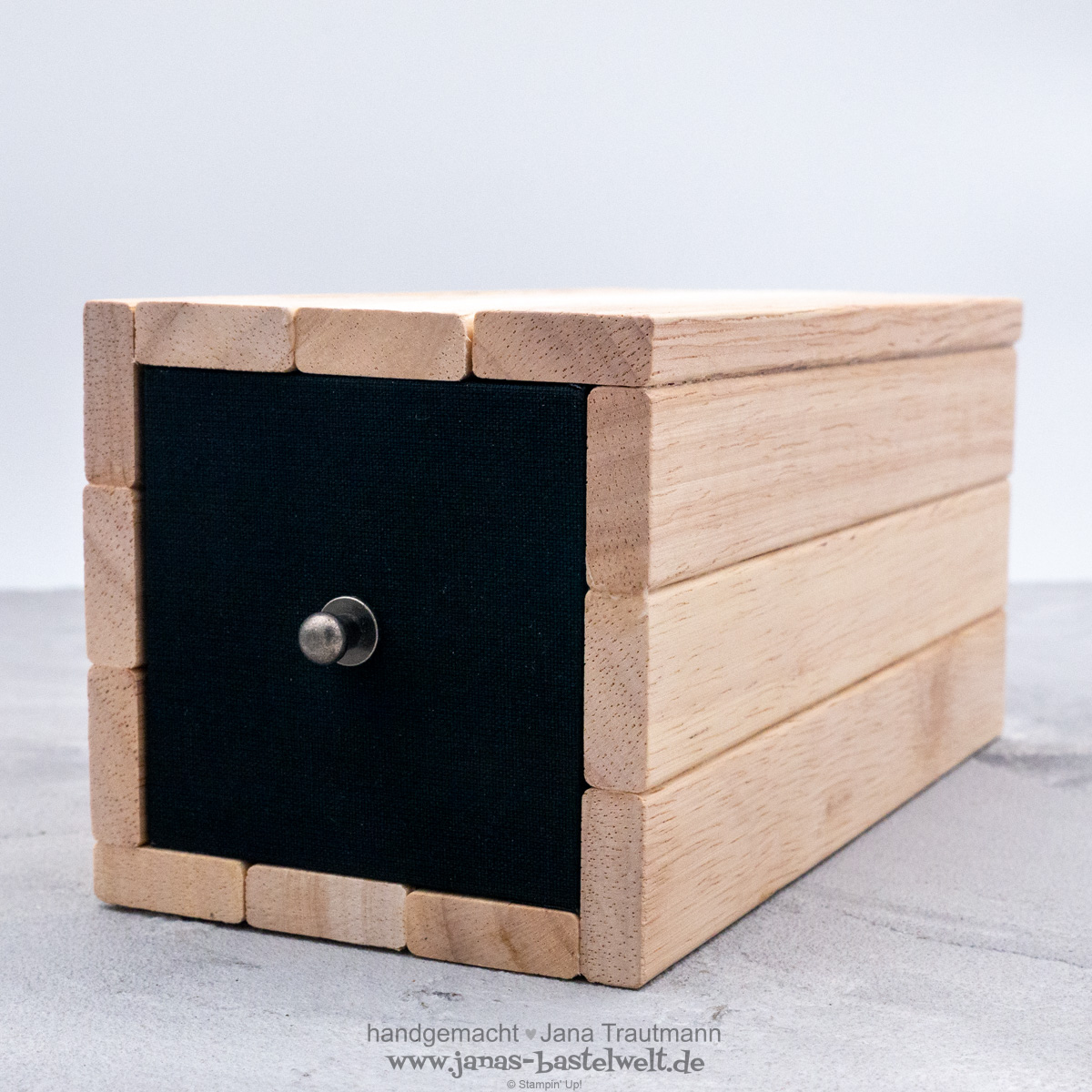 Heute folgt der letzte Wichtelbeitrag, der zugegebenermaßen nur dezent mit Stampin' Up! zu tun hat. Mareike hat sich, wie bereits erwähnt, etwas aus Keraflott, aber gerne auch mit Klötzchen gewünscht. Ich hatte von der lieben Tina aus meinem Team für die Adventszeit eine ganz wunderbare Klötzchen-Schublade (als eine Art Adventskalender) geschenkt bekommen und musste diese einfach nachbasteln, da mich das Projekt so begeistert hat.