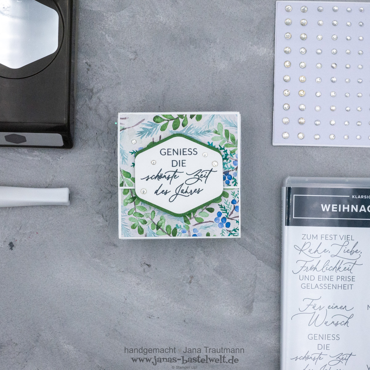 Jedes Jahr wichteln wir innerhalb des Bastelwelt-Teams und diesmal durfte ich der lieben Mareike eine Freude bereiten. Als Anhaltspunkte hat sie in ihrem Wunschzettel hinterlegt, dass sie Schwarz ganz besonders mag, aber auch Grüntöne und Beerenfarben. Außerdem mag sie es gerne schlicht, natürlich und elegant glitzernd. Gesagt, getan - und das ist dabei herumgekommen: